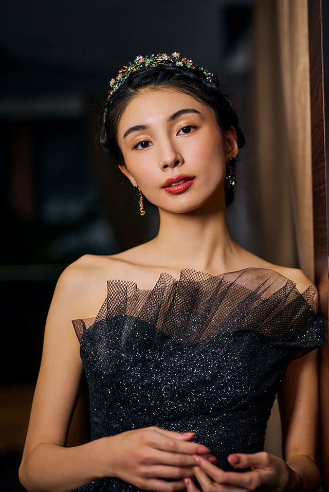 満点の星空のように、光を浴びてきらめくグリッターが輝くカラードレス。ファッショナブルな印象を与えてくれるフィッシュネットチュールは、立体的なスカートの形を美しく保ちながら、軽やかな着心地も叶えてくれます。立ち上がるように胸元にあしられたチュールのデザインが、デコルテをすっきりと見せてくれるだけではなく、座ったときも華やかな印象を与えてくれます。どこからみてもドラマチックな装いは写真に収めた瞬間も、誰もが惹きつけられるような存在感を放ちます。